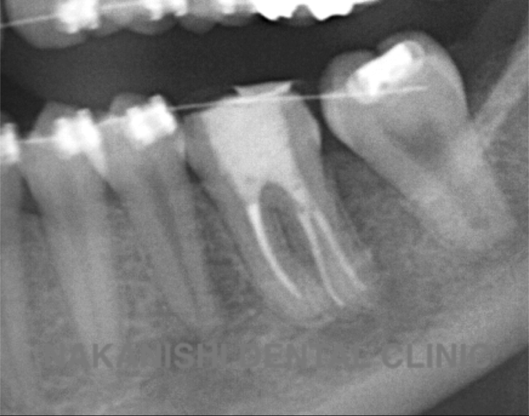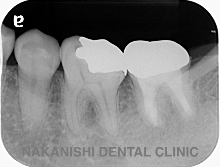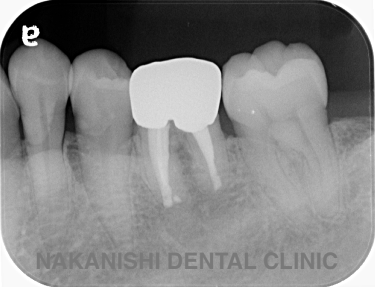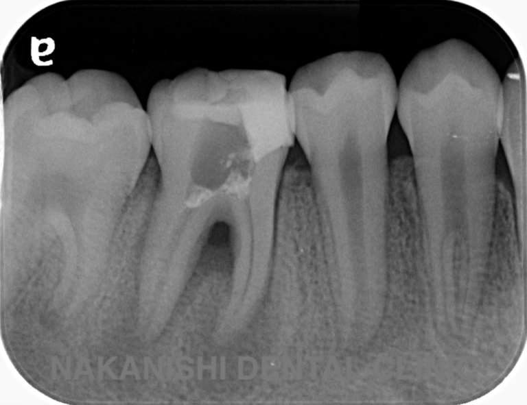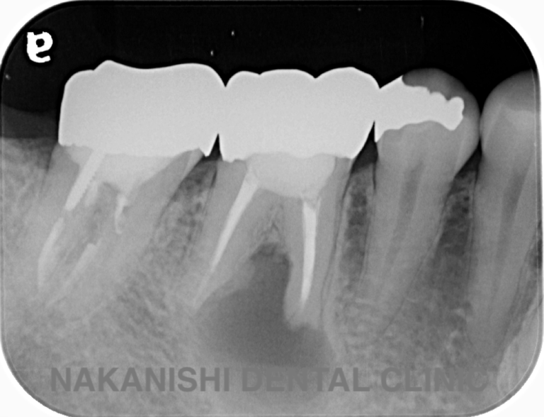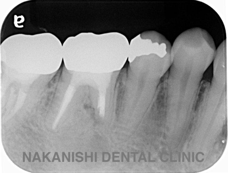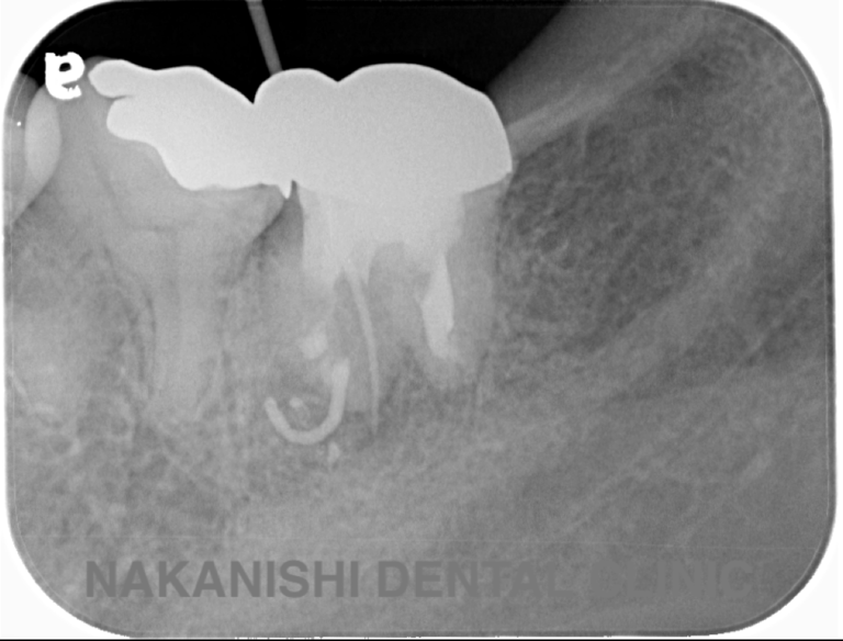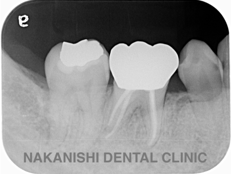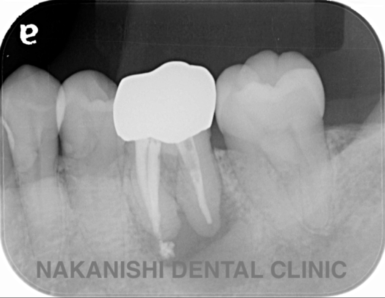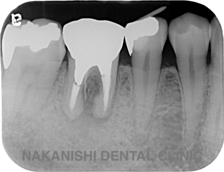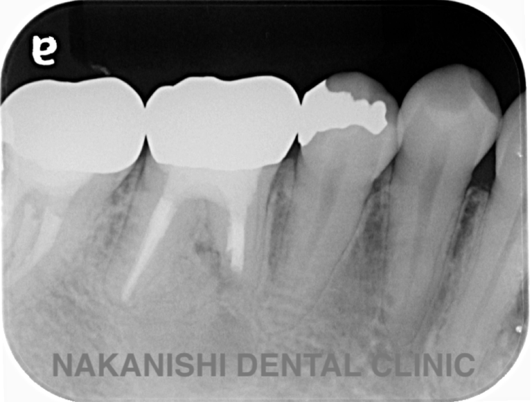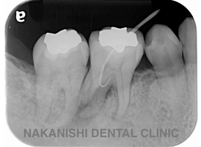 | 治療内容 | ラバーダム、マイクロスコープ下にて根管治療を施術。 腫れは消失し被せ物を製作し問題なく使えている。 |